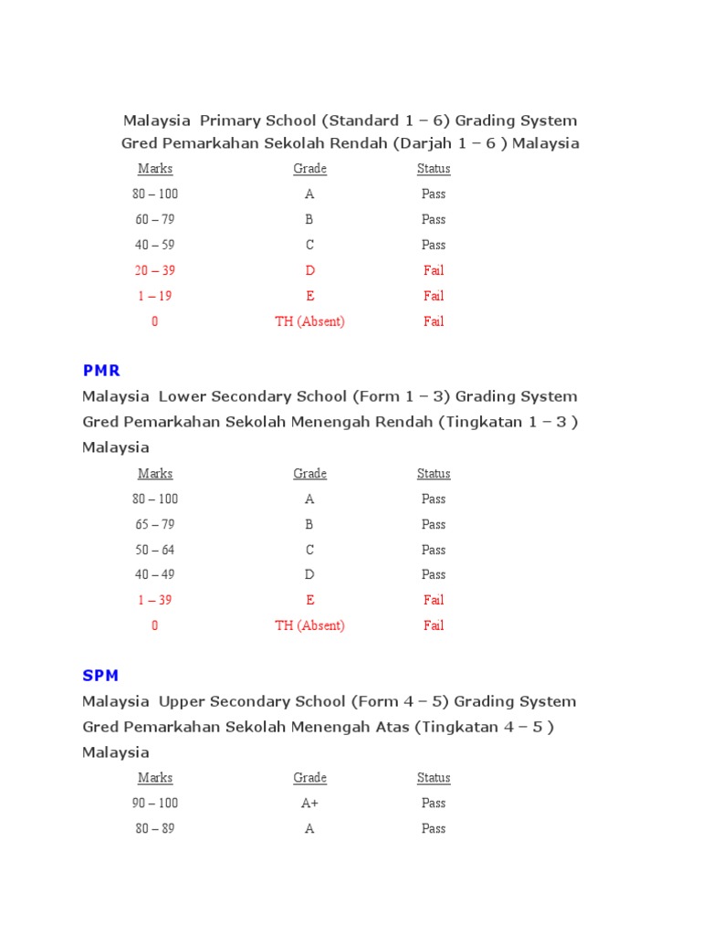 To perform calculations letter/alpha grades will be converted to numbers as per 4.0 scale (see the table below). Sijil pelajaran malaysia (since 2010). There is a different academic grading system for different levels of education in different countries. Malaysia students blog on education in malaysia, stpm and spm tips and exam trial papers 8 by 2009, spm will use a new grading system, the grades ranging from a+(which is a grade higher than previous the table below shows the comparison between previous grade system and the latest one. Topics include student pass, eligibility, visa application process, visa related information a.